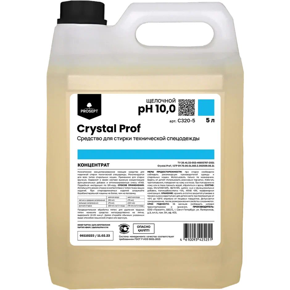 Crystal Prof 5л, средство для стирки технической спецодежды