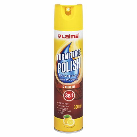 Эффективная формула полироли для мебели LAIMA обеспечивает длительное сияние и обновлённый внешний вид, очищает деревянные поверхности, не оставляет разводов и липкости. Подходит для очищения деревянных, ламинированных, полированных поверхностей.