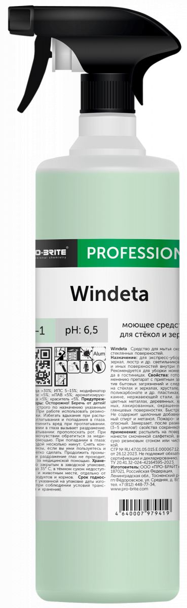WINDETA 1л, моющее средство для стёкол и зеркал
