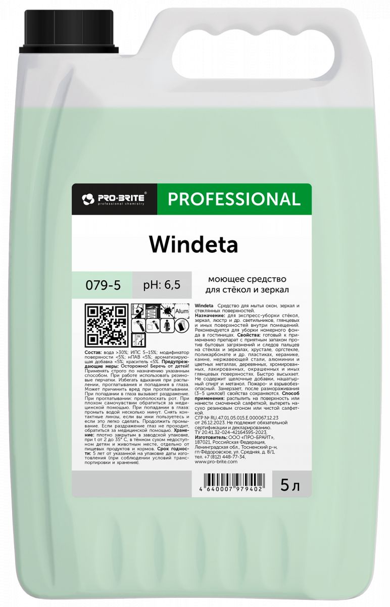 WINDETA 5л, моющее средство для стёкол и зеркал
